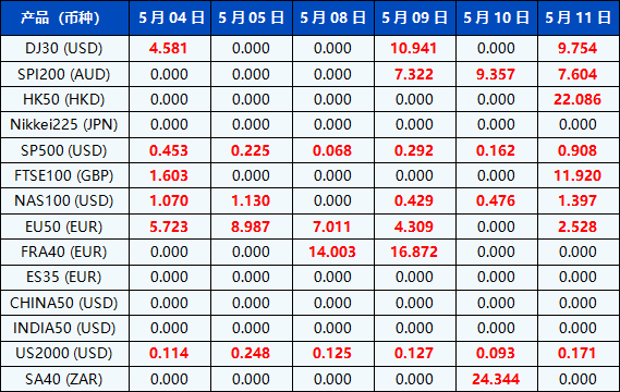 请注意, 以上数据仅供参考,所有数据均以MT4/MT5软件实际执行情况为准。