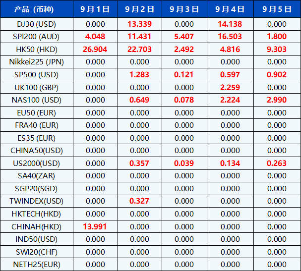 请注意, 以上数据仅供参考,所有数据均以MT4/MT5软件实际执行情况为准。